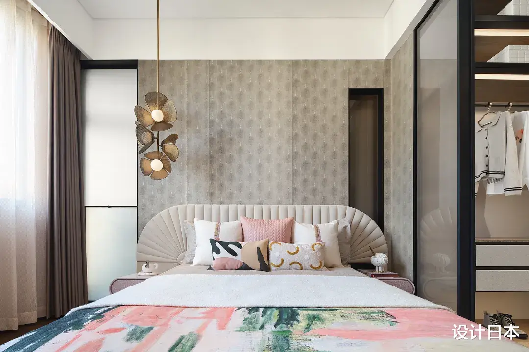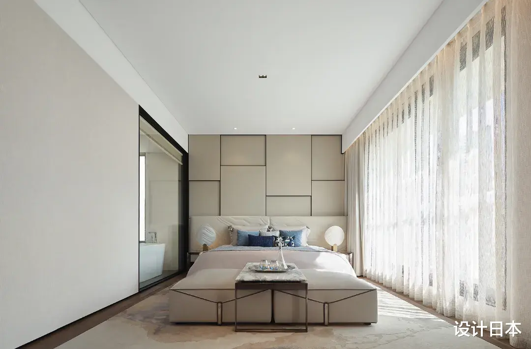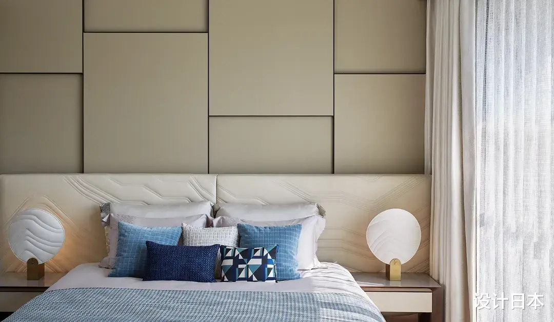 The design of the bedroom is simple and pure, with one wall maintaining a white elegance, while the combination of square patterns on the background of the bed gives the space a deeper artistic enjoyment. The gentle veil filtered out the excess sunlight, as if even time had slowed down its pace here.