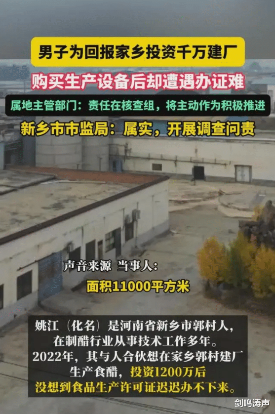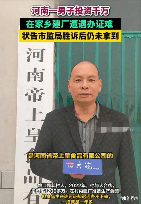 前段时间,网传平原某地姚老板投资1200万元创办食醋厂,结果却因为一纸食品许可证迟迟无法投产,这一拖就是整整一年零三个月!