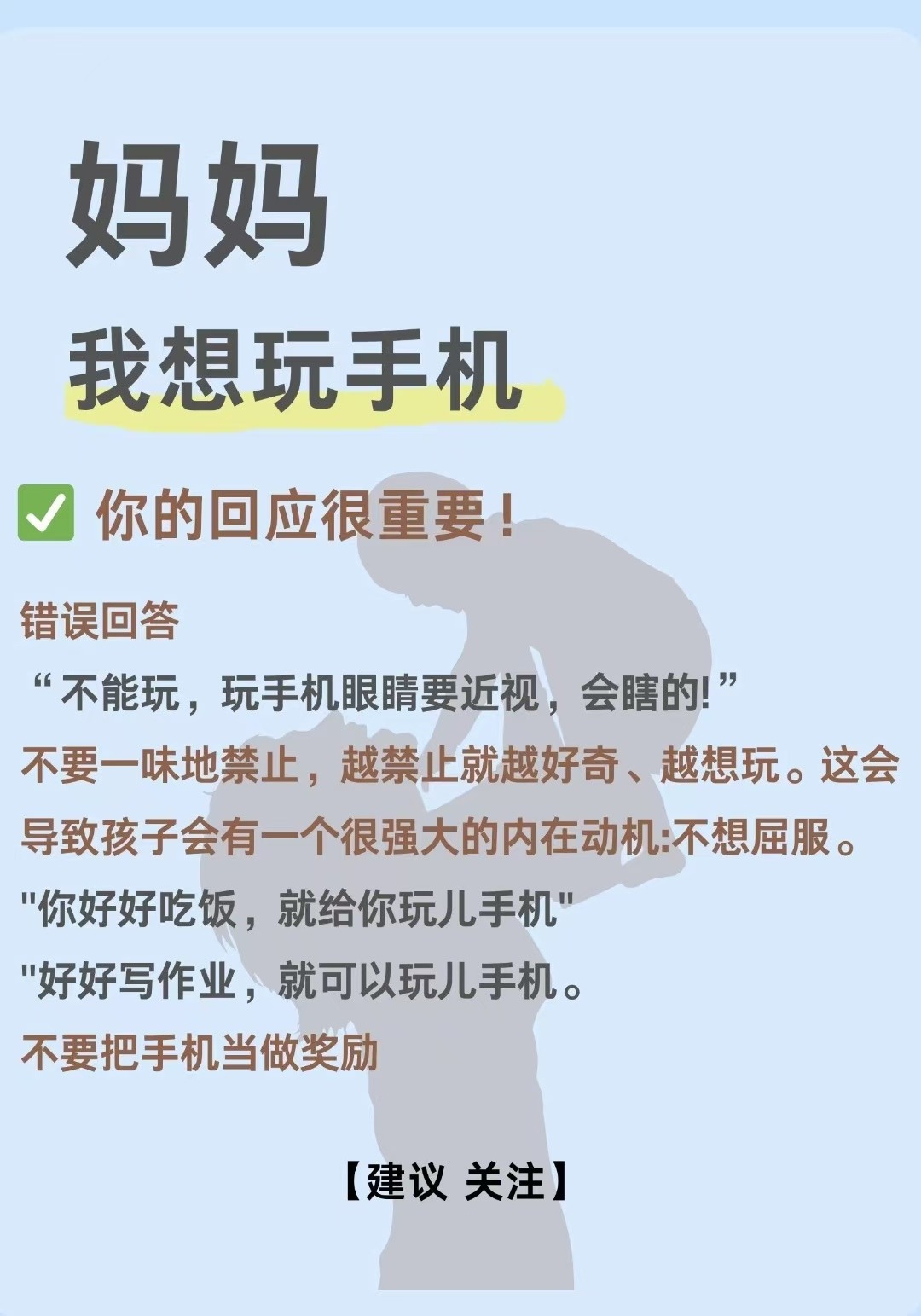 当孩子说“妈妈,我想玩手机”的时候,妈妈们,你们要用坚定的态度、充满智慧的策略和无私的陪伴来回应。这不仅仅是在管理孩子玩手机这件小事,更是在塑造孩子的价值观、培养他的自律能力和丰富他的童年生活。这是一份沉甸甸的责任,也是一份无比甜蜜的使命。每一个妈妈都要牢记,你们的回应,是孩子成长道路上的一盏明灯,引导着他们走向健康、快乐、自律的未来。