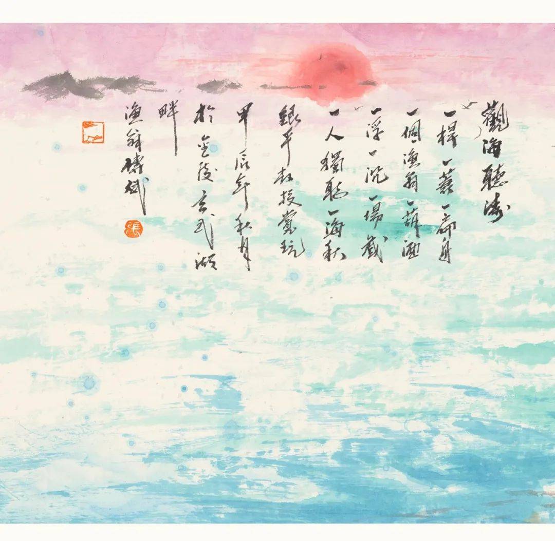 “东海渔翁”张传斌教授《观海听涛》国画作品
