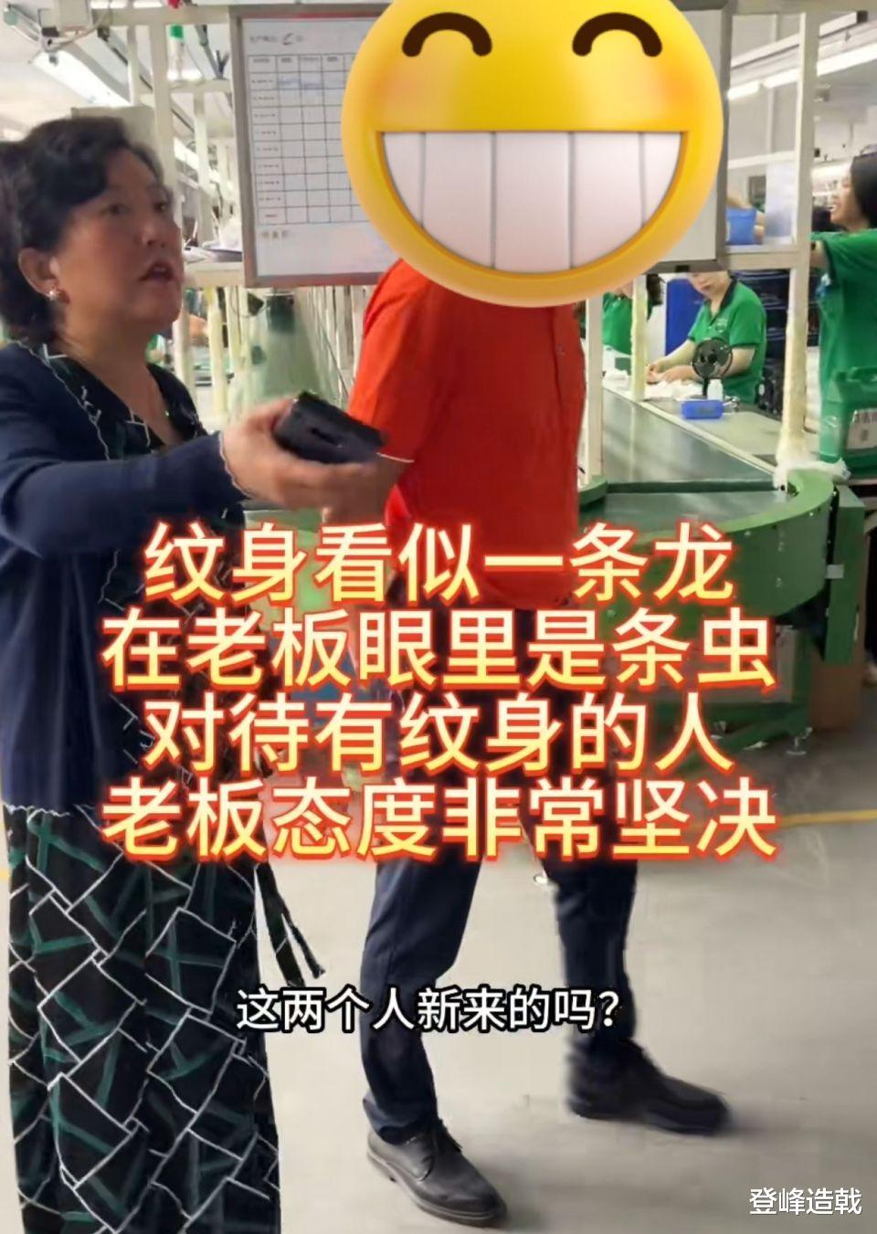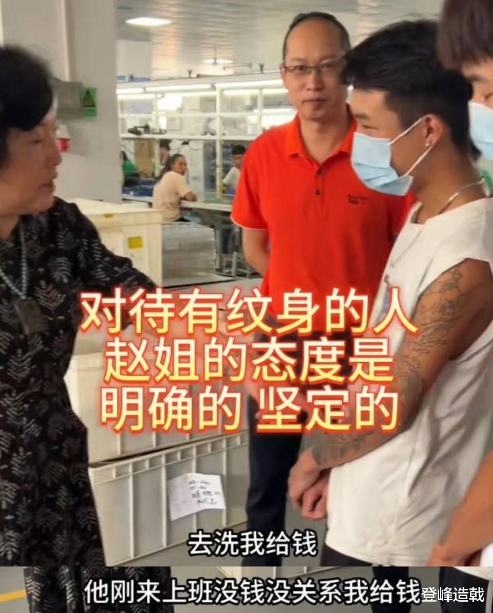 小伙子因为纹身,哪怕不在女老板这里受阻,去到别的工厂,可能还会遭到招工人的歧视,因此失去很多工作机会。