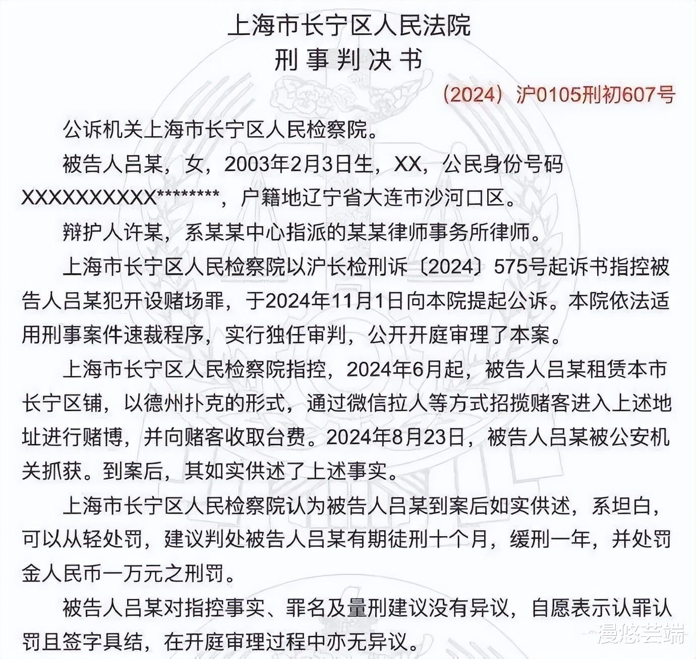 从2024年6月起,吕相宜在上海开设地下赌场,现如今已经被抓。