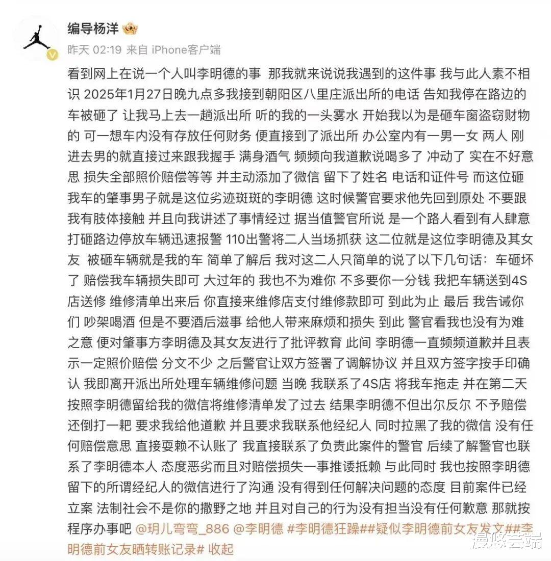 但是第二天,李明德突然变脸,不但不赔钱,反而倒打一耙,让车主给他道歉,还把人家的微信删了。