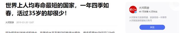 大河旅游——《世界上人均寿命最短的国家,一年四季如春,活过35岁的却很少!》2019-03-20