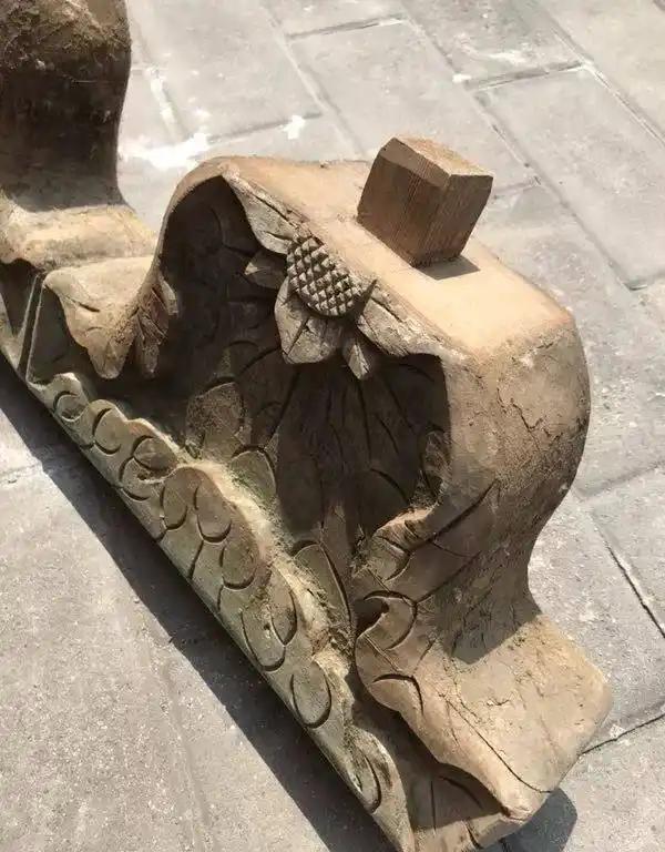 他的府宅建造规格比较高,所使用的建筑材料也比较特别、讲究,一般普通人家用的荷叶墩都是素面的,而这几块木头上还有雕刻的花纹,可见应该是老物件,人们推测应该是清朝初期的东西。