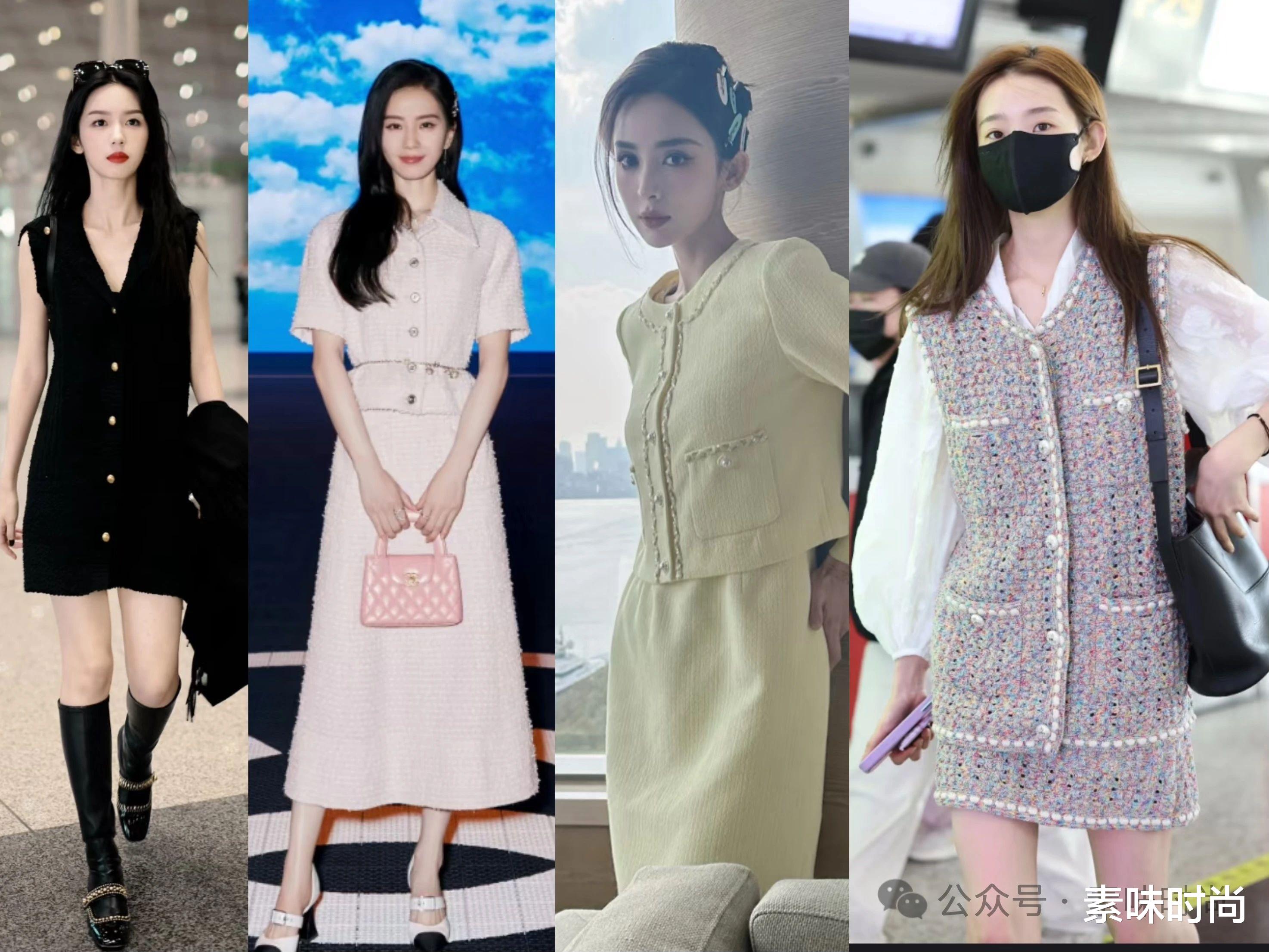 连衣裙与小香风外套的搭配,堪称时尚界的优雅典范,将精致与柔美完美融合。