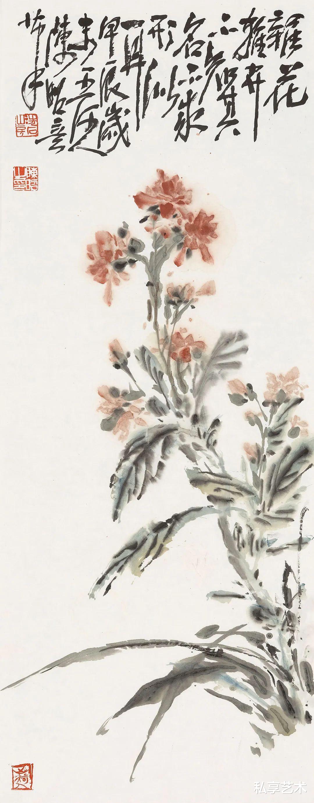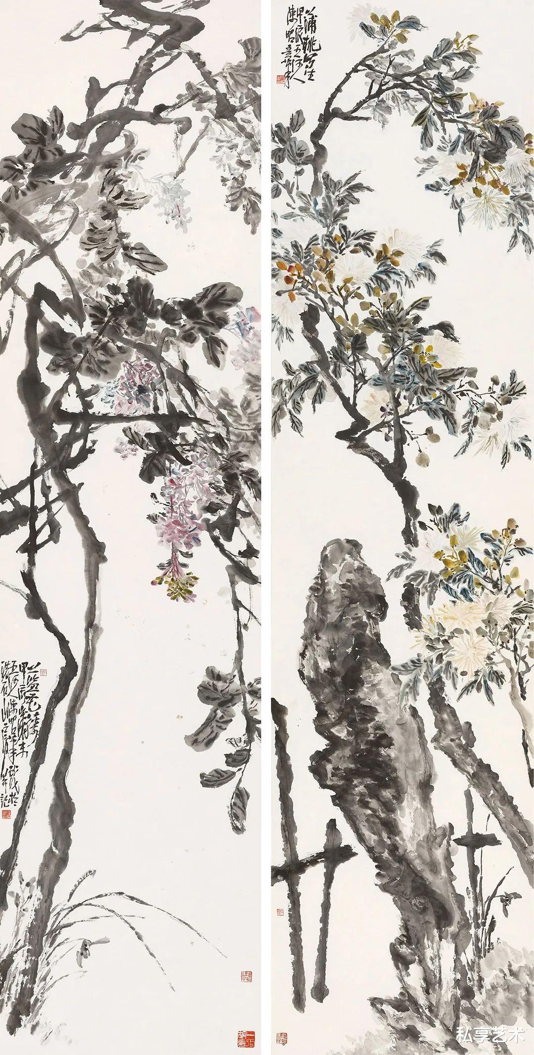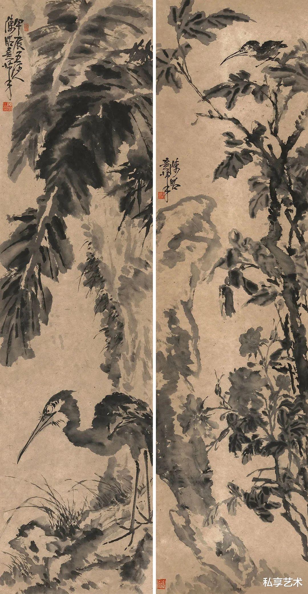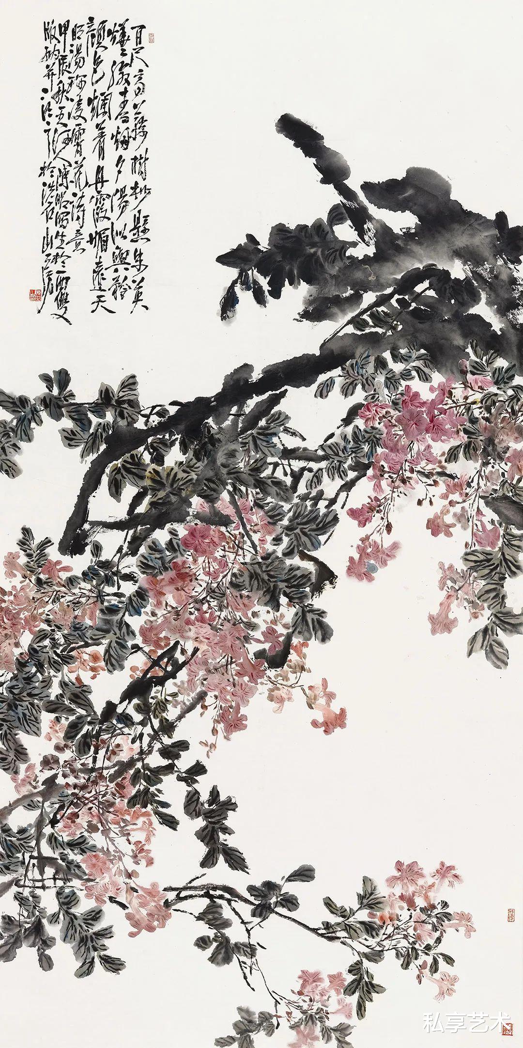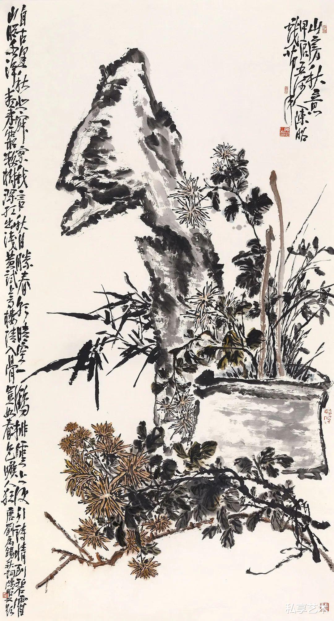 写意是中国画的灵魂,亦是主要表达形式,大写意花鸟画历代大家辈出,又有万千变化的品格意象,陈昭在此道中探索出新意尤为难得。他的作品贵在得"真",五代荆浩曰:"搜妙创真""真者气质俱盛",陈昭舍弃当下一些流行样式,遵循自我本性,在写意本体中深入锤炼,度花卉禽鸟的物象取其真意,以写意的形式语言生发出自我真性情。笔墨苍润,意趣活泼。他立足于花鸟画中金石书写的大脉络,讲究以笔写形,由笔见势。章法布局从吴昌硕花鸟画的形势衍生而来,又融入自我的写生内容与生活体验,从物象中"写其真意",化画谱图式为鲜活景致。在用笔设色中吸收黄宾虹花鸟画的"非标准化"的形式与趣味,采取疏脱简散状态的笔法,使造型韵律松活,不拘于外形色调。吴黄这两家形式与笔法差异很大,陈昭把这两家做了一个很好的融合。从笔墨的丰富度和趣味性上吸收黄宾虹的高古篆籀意趣,章法整体沿承吴昌硕的大开阖布局节奏,在大写意花鸟画创作上做出拓展和提纯。