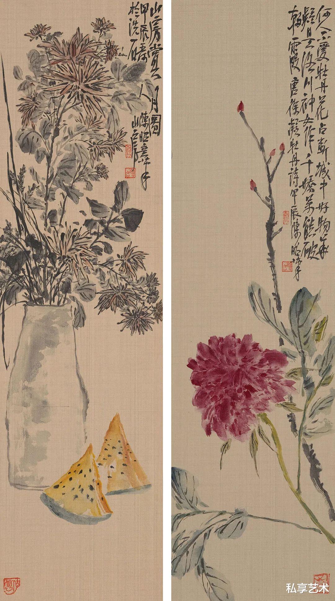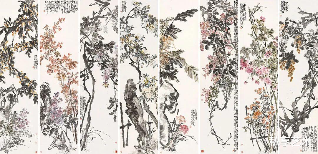 《写生花卉八条屏》248x62cmx8-纸本设色-2024