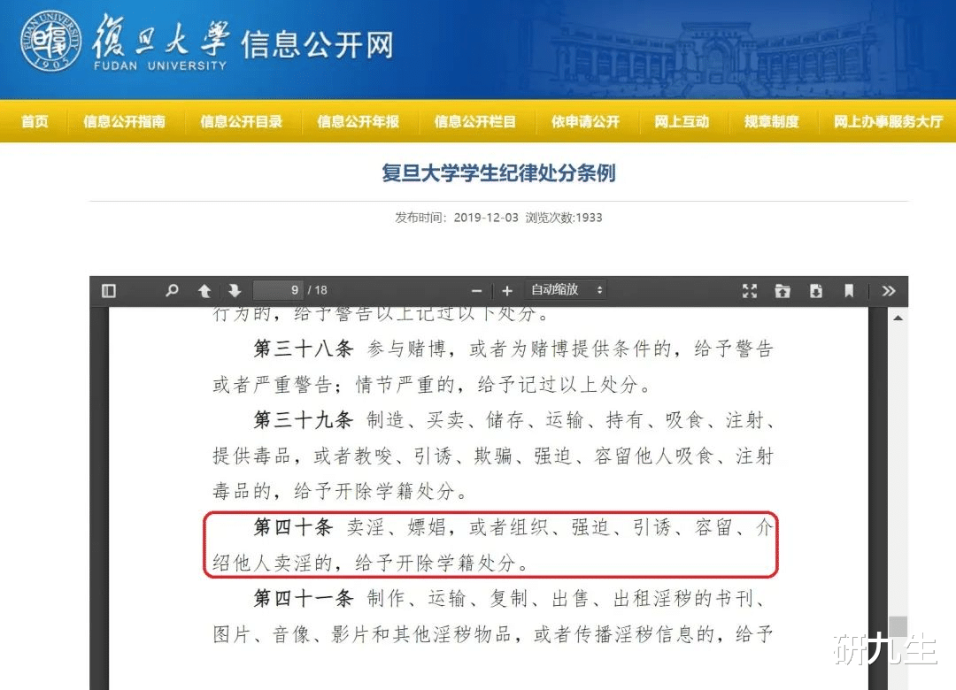 但另一方面,复旦大学还规定,对于嫖娼行为,开除学籍。