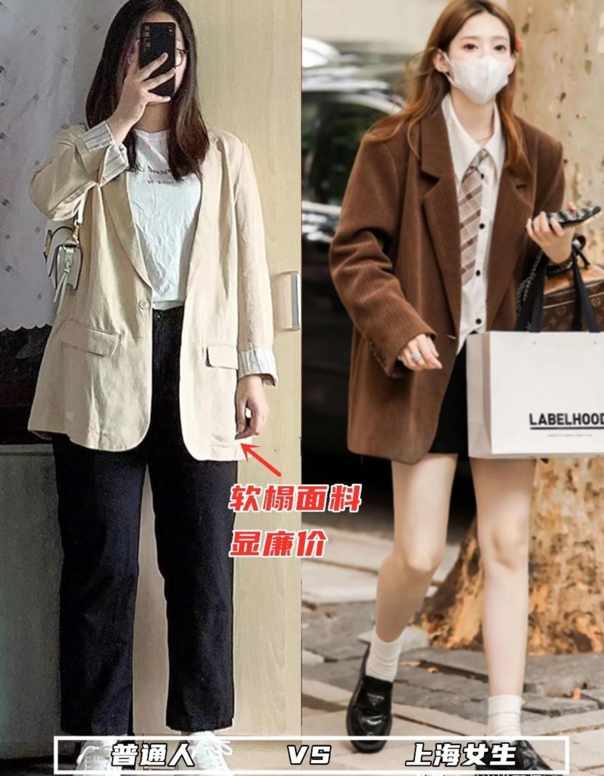 第三点:看面料:软塌面料显廉价VS挺括舒适的质感