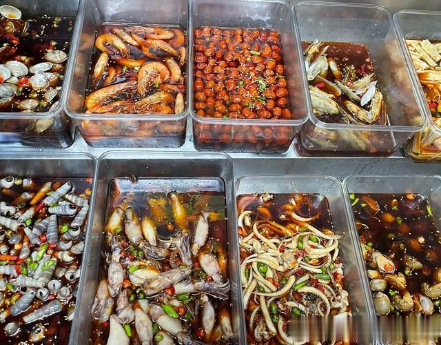 花甲、小蛏子、小鲍鱼、花螺、小八爪鱼、文蛤、扇贝、小墨鱼仔、小青口、生蚝、鱿鱼圈、基围虾