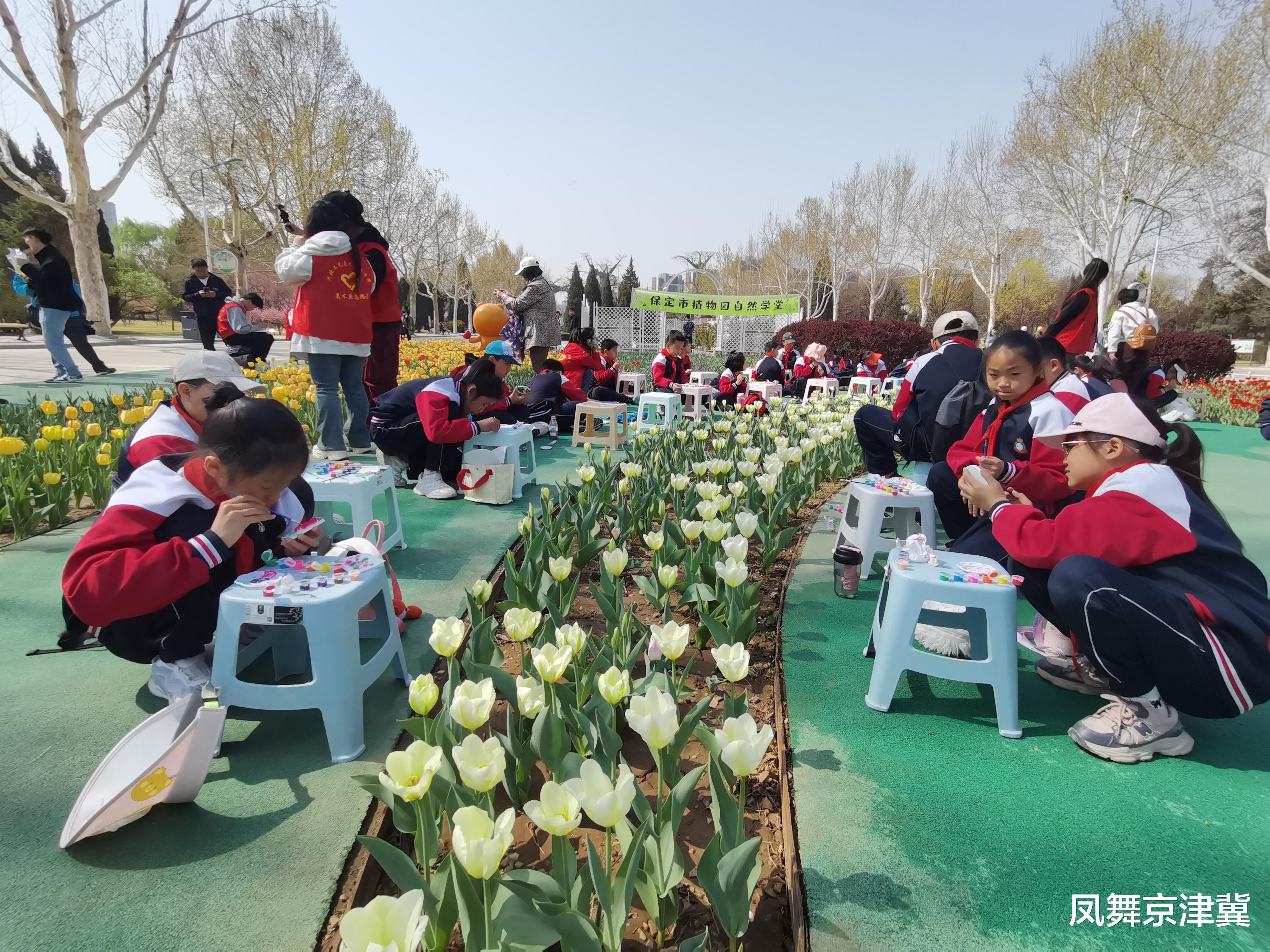 当天,同学们分为2组,在植物园自然讲师和保定学院师生的带领下,一起游园赏春花,听取“清明节”传统文化知识讲授,最后在郁金香花海共同进行了花卉石膏画彩绘手工。其间,河北工艺美术学院美术系学生一展绘画风采,用画笔定格了春花的风采和活动的美丽瞬间。