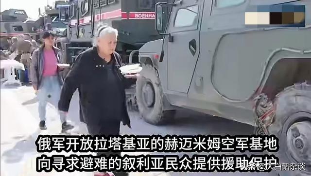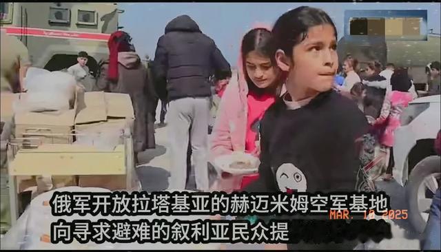另一个画面是,有不少难民涌入俄军开放的拉塔基亚赫迈米姆空军基地寻求保护,而该基地并没有拒绝,不但为他们搭建了帐篷,还为他们提供了食物。