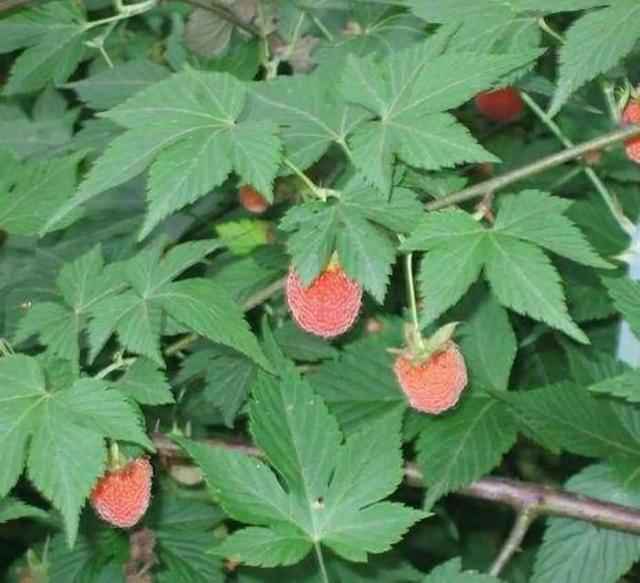 覆盆子是悬钩子属植物,其成熟果实营养丰富,味道酸甜,可食用。