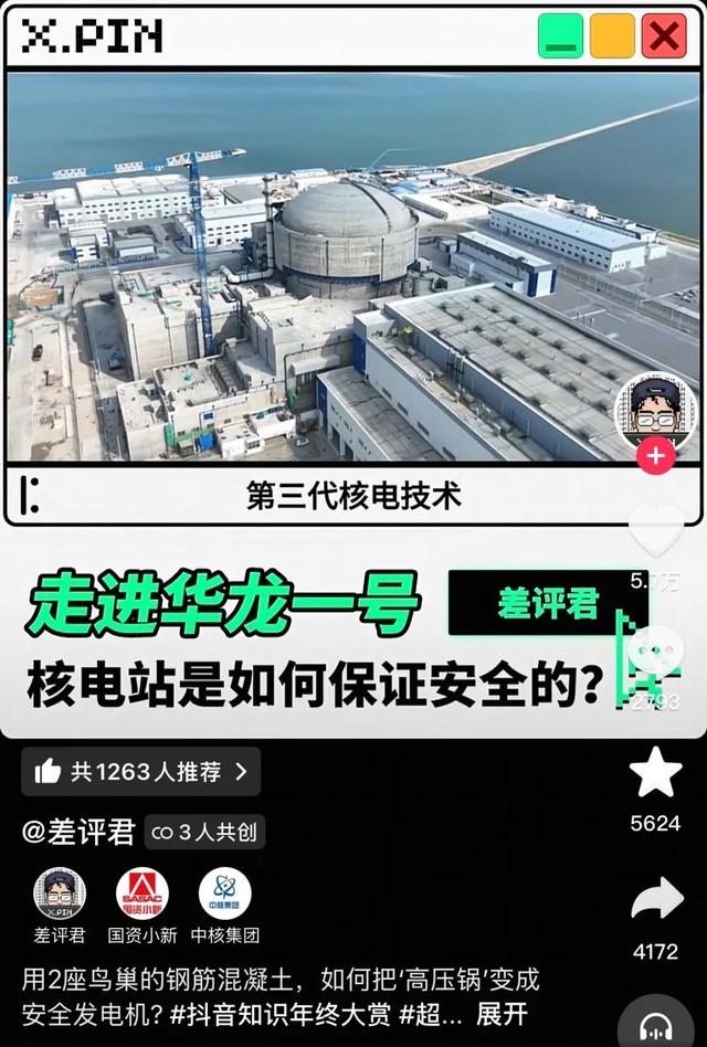 在极客高点事件策划外,抖音还将牵手30+先锋企业,助力科技创作者突破创作边界。今年年初,在抖音官方撮合下,超430万粉丝体量的@差评君 联动@国资小新、@中核集团,走进“华龙一号”漳州核电站,探秘核电站的安全性原理。