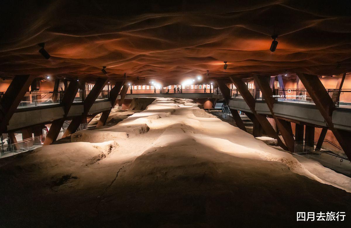 应天门也绝非空壳建筑,它的内部是体量庞大的博物馆,只是游客寥寥无几。内部可以近距离看到东西两阙巨大的夯土台基,保存较好的城墙台基依然有4米高。这些台基已经被历史的风霜磨圆了棱角,但仍然能从城门的规模与高度,想象过去应天门的磅礴气势。不过博物馆的布展和展品还是比较少,如果将来布展都填满了,内容应该更丰富。