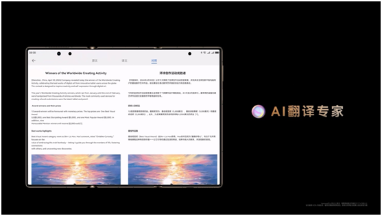 当然,旗舰手机自然也离不开强大的AI能力,华为Mate XT 非凡大师内置盘古大模型赋能的小艺,无论是文字编辑、信息查询还是语言翻译,小艺都能迅速响应并做出准确回复。还有AI扩图功能,可以根据图像内容智能填充扩展区域,为用户带来更大的创作空间;AI信息顾问,能在阅读文章时提炼核心观点,让用户在繁忙的工作中也能迅速抓住关键信息。
