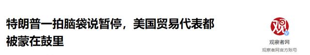 信息来源:观察者网2025年4月10日——特朗普一拍脑袋说暂停,美国贸易代表都被蒙在鼓里