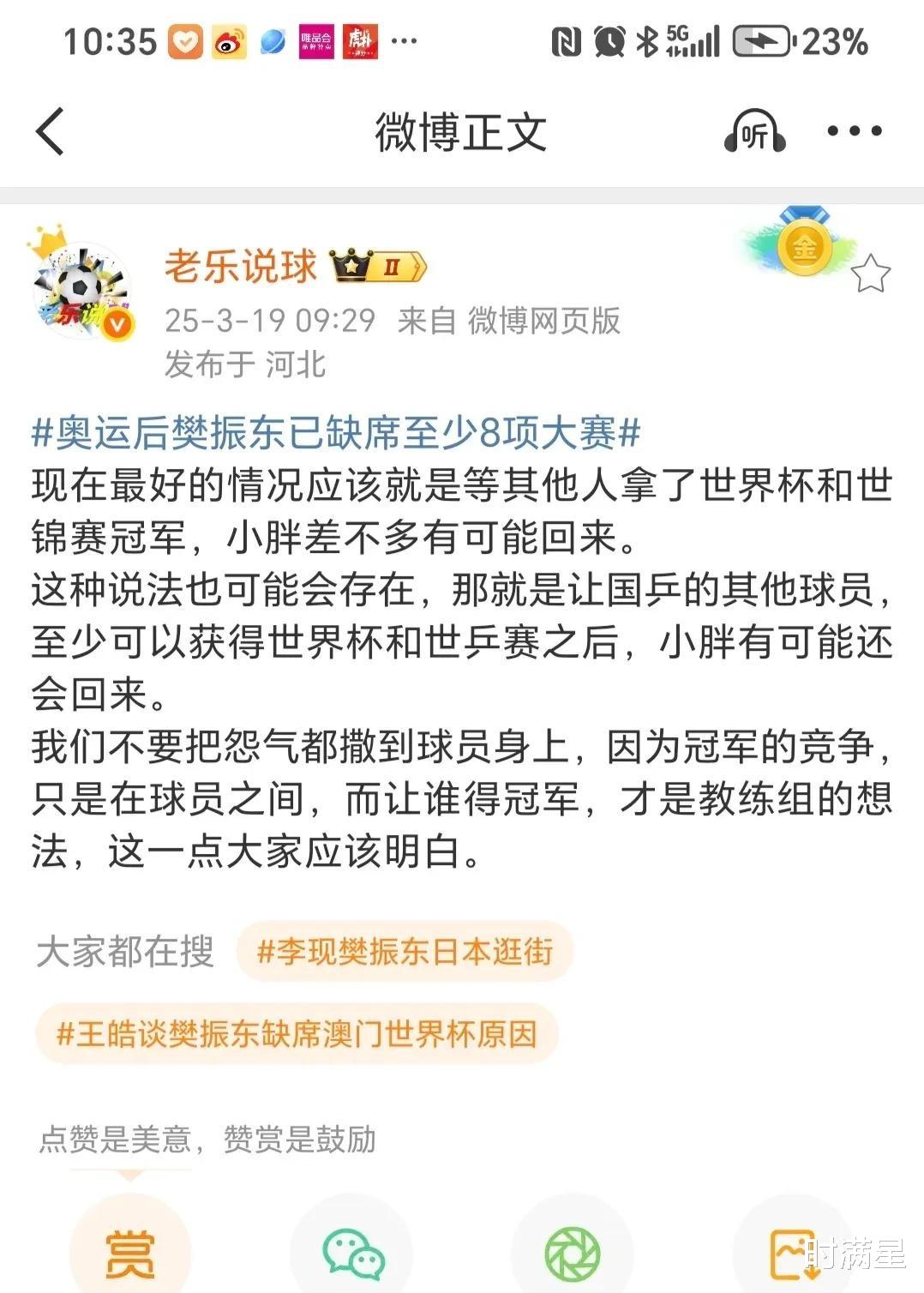 关于樊振东回归时间的预测,更是众说纷纭,莫衷一是。 大V“老乐说球” 在其社交媒体上大胆预测,樊振东的回归可能与其他国乒球员的成绩息息相关。 他认为,只有当王楚钦或林诗栋等年轻球员在世界杯和世乒赛上取得突破性成绩,证明了他们有能力扛起国乒的大旗之后,樊振东才更有可能回归赛场。 这种说法有一定的逻辑性,毕竟国乒的整体实力需要新老交替,年轻球员的崛起才能更好地保证队伍的持续竞争力。