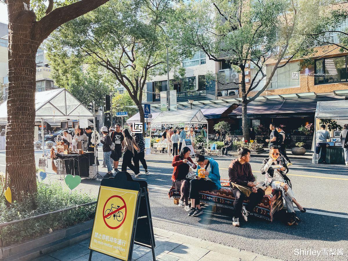 在我们当天看到的所有摊位里,一些布置比较吸睛的摊位前会有不少顾客,一些普通摊位前则顾客寥寥。仔细观察了一下大家也是看热闹的居多,真正付款成交的非常少。与之形成鲜明反差的是大学路两边餐厅食肆的户外座位几乎全部坐满,下午想找个有户外座位的咖啡馆喝个咖啡几乎不可能,晚上几家人气餐厅也是大排长队。