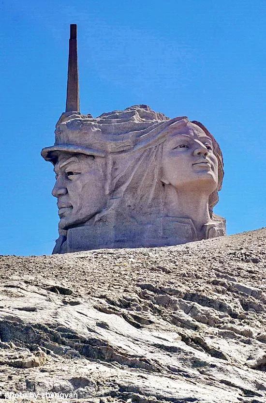 6.21号中午我们离开了敦煌莫高窟,向着新疆出发。 西去的高速公路,不断延伸着,通向远方。沿途呈现的是:荒漠、荒滩、戈壁、沙丘。和别处不同的是,这里的戈壁连一点绿色都没有,想起吕文科唱的《克拉玛依之歌》,里面有几句歌词太真实的写出我此时此刻的感受:“……漫漫的戈壁像无边的火海……,你没有草没有水连鸟儿也不飞……,你没有歌声没有鲜花没有人迹……。” 百无聊赖的我在大巴车的颠簸中昏昏沉沉的睡着了,感觉车停了,我睁开迷迷糊糊的眼睛看了一眼,原来是公安检查站的在进行严格的检查,听群友说这是进疆的第一站,检查的特别仔细。我的眼睛又闭上准备继续睡觉,忽然脑子里有一个名字闪了出来“星星峡”,我把眼睛睁开仔细看,房屋上几个大字那样清晰“星星峡公安检查站”。就像被打了一针兴奋剂,全身的细胞都被调动起来,我不知道检查站的位置是在峡口还是在谷里,我想寻找西路军将士的群雕像,我在晓东姐的《新疆游子游新疆》图片里看到过。