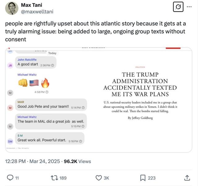 同时,这事也捅到了特朗普那。特朗普也是一问三不知,称自己毫不知情,并表示《大西洋月刊》马上要倒闭了,也跟马斯克事件的表态差不多。那这基本就可以坐实了,这位《大西洋月刊》主编的说法都是真的。