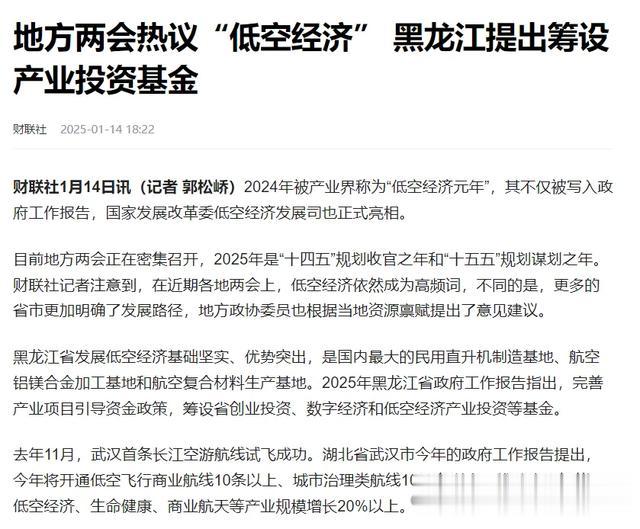 上海:探索开展低空飞行应用场景试点,加快推进全国一体化算力网络长三角国家枢纽节点建设,地方两会热议“低空经济” 黑龙江提出筹设产业投资基金