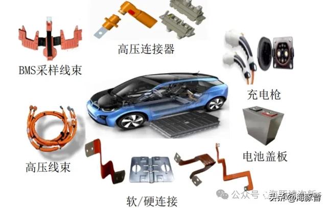 汽车连接器主要品类如下,其涉及软硬件连接,其中高压线束为其众多应用之一。
