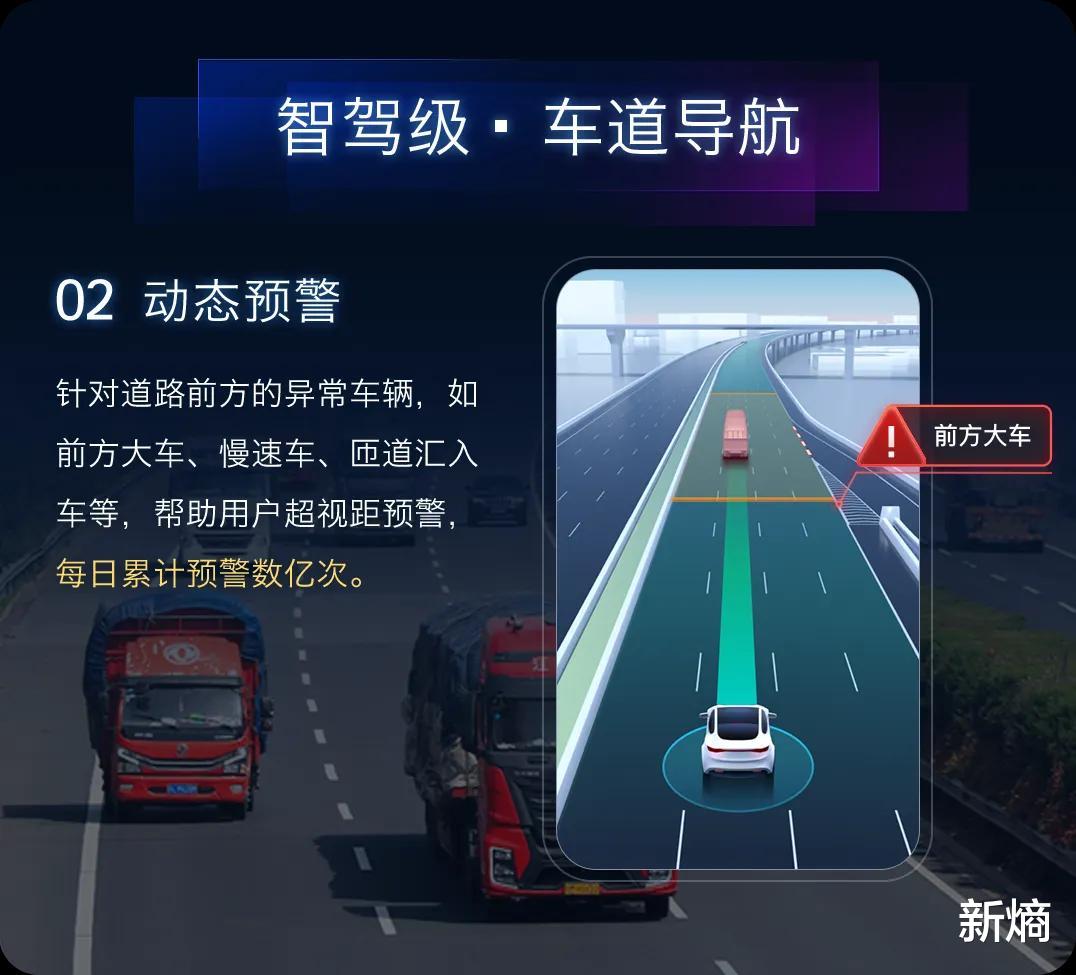 百度地图发布的V21版本,则更倾向于方向二,即提高汽车智驾的安全性。其新版本的焦点在于“智驾级导航”,如以车道为最小单元,结合分钟级动态更新和超视距预警,通过用户预警为智驾系统提供安全保障;智驾级车位导航,行泊一图到底等。