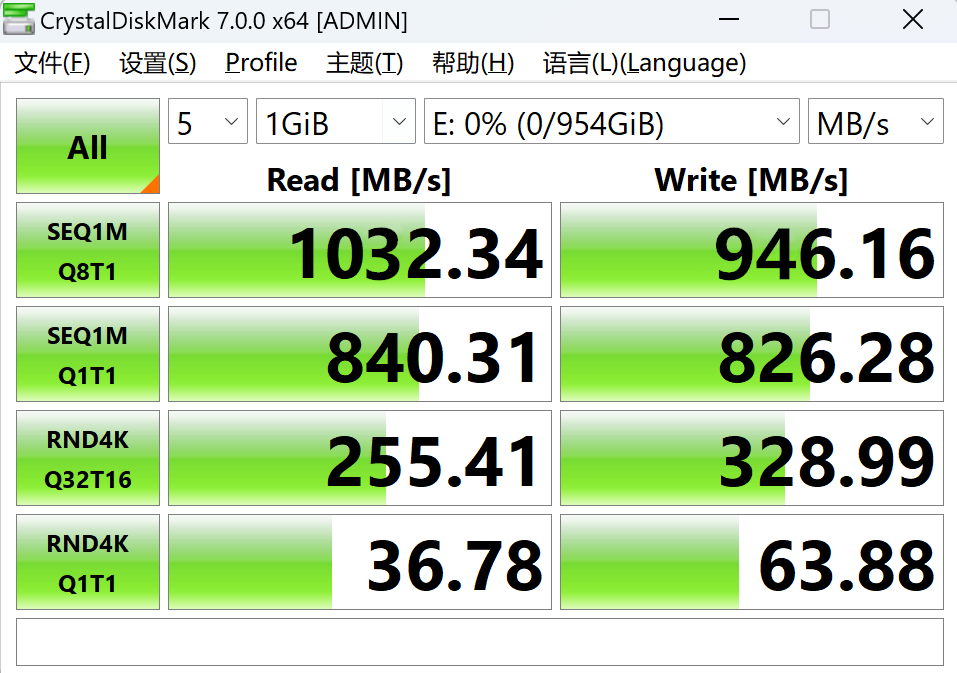 拿到联想PS9移动固态硬盘,我也想看看速度数据,朋友推荐我用CrystalDiskMark来测硬盘,我试了试,感觉还可以,测试非常快速,数据也准确。随机读取/写入速度、4KB随机性能测试能快速测试到。