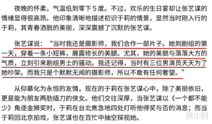 当年张艺谋还是个籍籍无名的摄影师,就已经对于莉印象深刻。