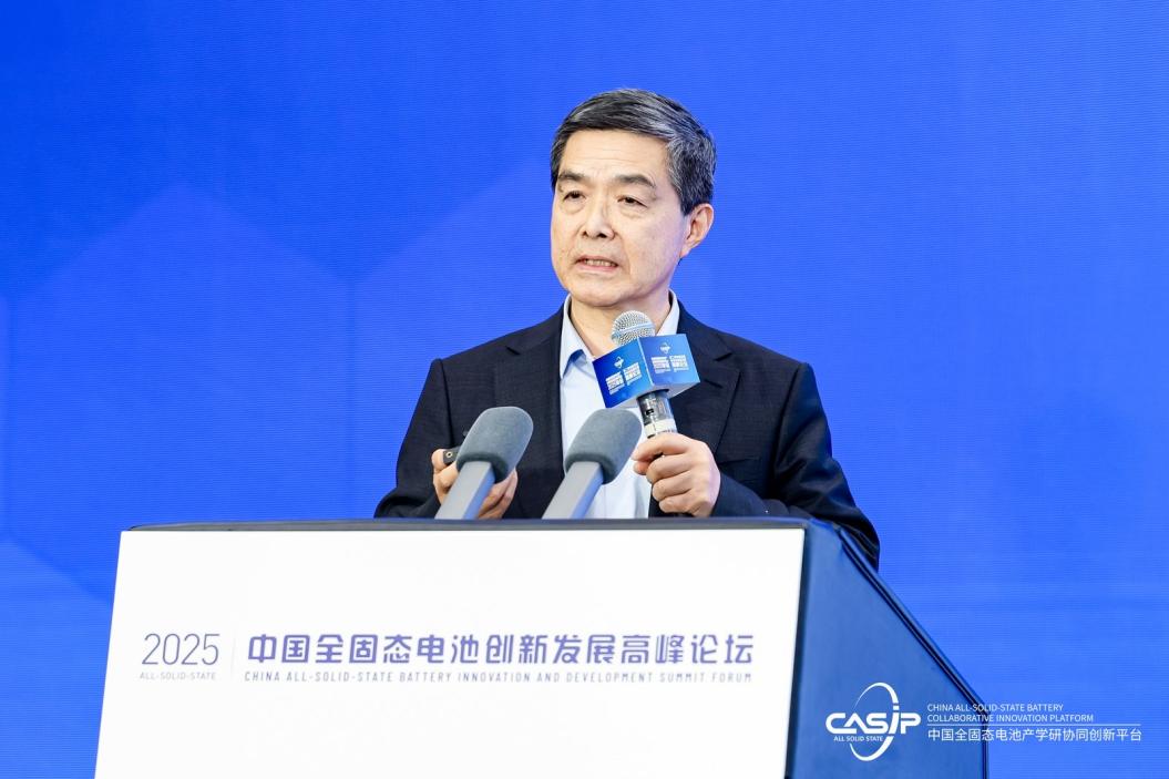 在第二届中国全固态电池创新发展高峰论坛上,全国政协常委、经济委员会副主任,工业和信息化部原部长苗圩,中国工程院院士、中国全固态电池产学研协同创新平台专家委员会主任陈立泉,中国产学研合作促进会会长王建华分别致辞;中国科学院院士、中国全固态电池产学研协同创新平台理事长欧阳明高作主旨报告;中国科学院院士、厦门大学教授、中国全固态电池产学研协同创新平台专家委员会副主任孙世刚,一汽集团首席科学家兼研发总院(科技创新管理部)高端汽车集成与控制全国重点实验室主任王德平,比亚迪锂电池有限公司CTO孙华军分别作了主题演讲;中国全固态电池产学研协同创新平台副理事长郑宏宇,中国科学院院士、中国全固态电池产学研协同创新平台专家委员会副主任陈军担任主持人。