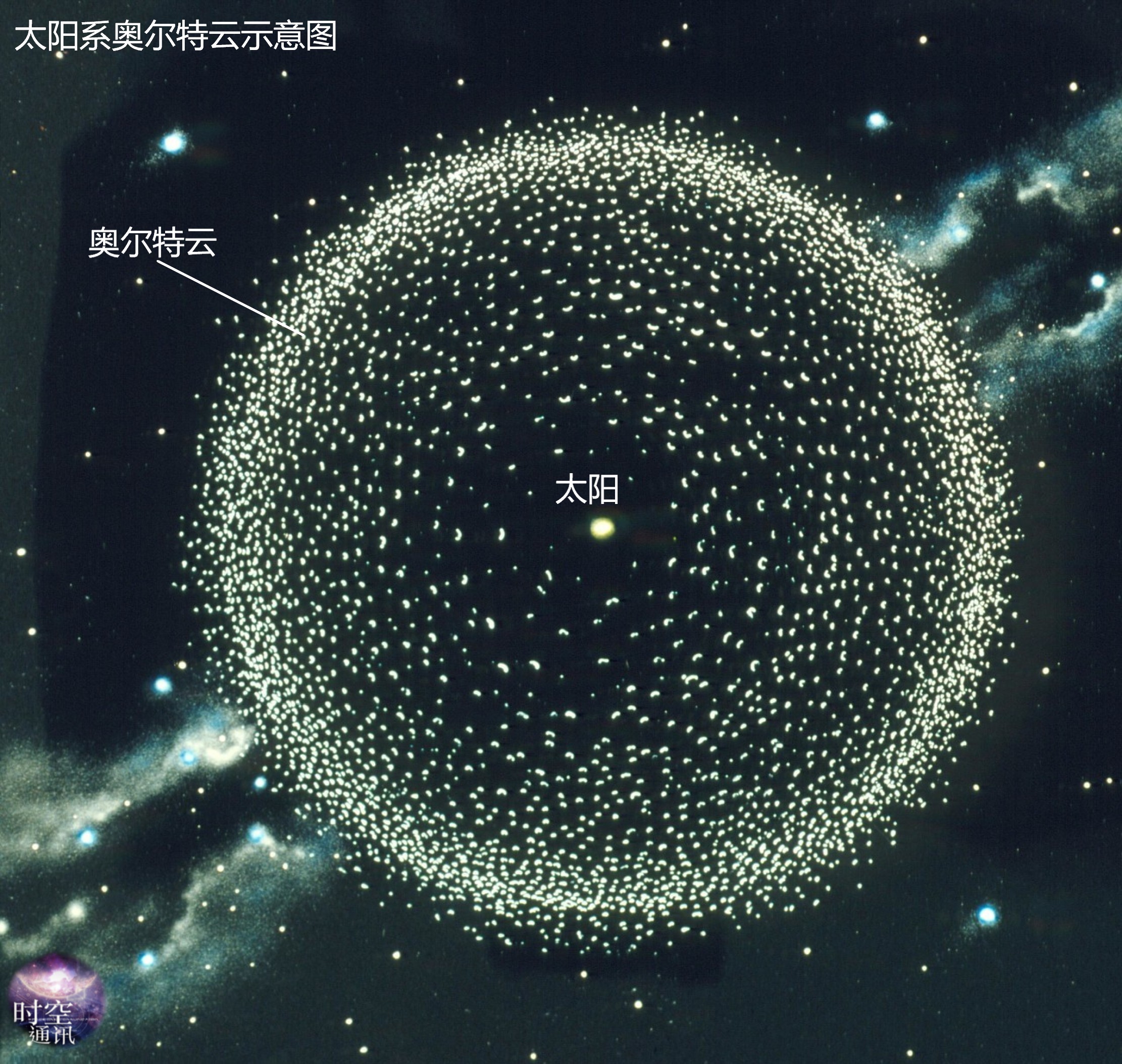 奥尔特云的存在尚未被直接观测到,但天文学家推测其确实存在。科学家认为,在奥尔特云区域,是彗星的家园,有着大大小小的彗星核数以十万亿颗,就如同上图,密密麻麻的包裹着太阳系。