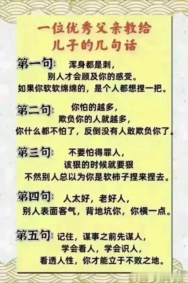 一位优秀父亲教给儿子的几句话,收藏起来看看,真的受益匪浅!