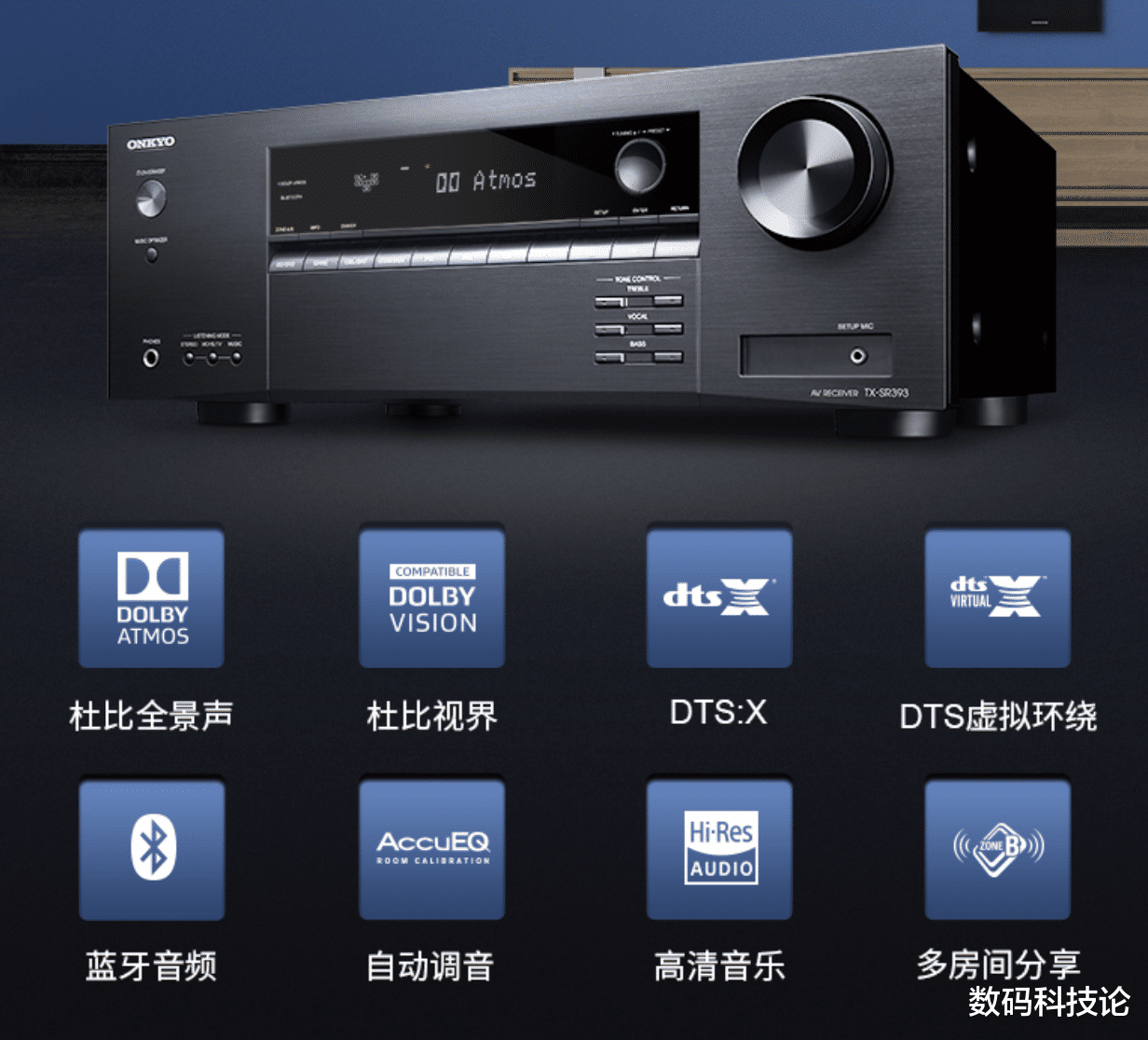 安桥TX-SR393在声道上刚好支持3.1.2物理声道,并且在音效上支持杜比全景声、杜比视界、D TS:X、DTS虚拟环绕等,这样一来在音效支持上也不会因为功放兼容性不够,音响的效果发挥不出来。