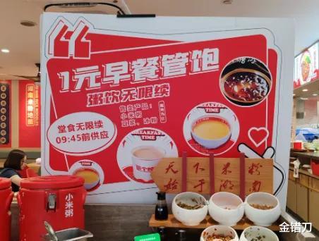 有的快餐店直接挂出标语:1元早餐吃饱。我就是穷鬼套餐彻底不装了。