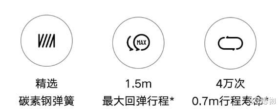 比如选用了碳素钢弹簧、能够实现最大回弹行程1.5米,而且0.7米的行程寿命高达4万次。