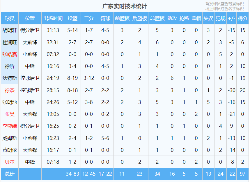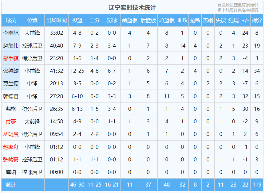 这场比赛双方上半场打得有来有回,比分并没有拉开。但是第三节广东队突然掉了链子,这一节广东队只得到14分,而辽宁队得到了30分!第4节虽然广东队曾经数次想缩小比分,但辽宁队非常老辣,数次扑灭客队的反扑,最终获得了本场比赛胜利。