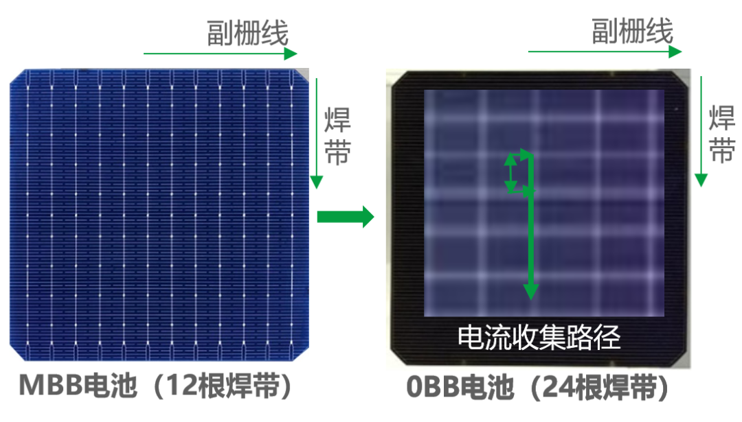 业内目前主流的技术SMBB,以及近期备受关注的0BB技术,其技术原理都是将导电银栅线(主栅线/副栅线,两者相互垂直)丝网印刷到光伏电池表面,再将金属焊带焊接到主栅线,从而使电池片形成串联。