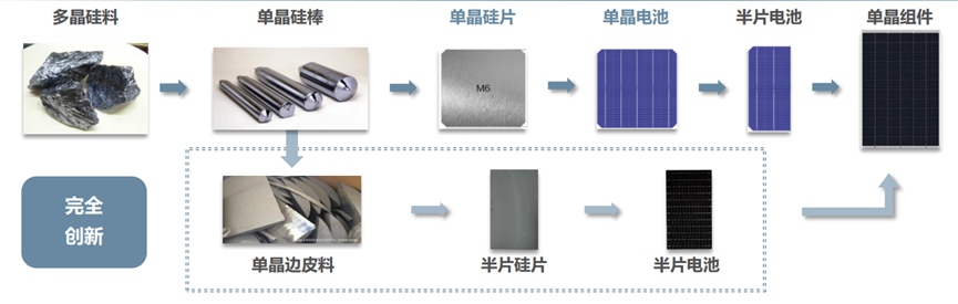边皮半片电池技术——该项技术同样开创了半片电池的先河。
