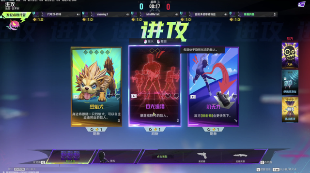 这个阶段你可以和队友沟通选择某张卡牌,如果你对随机刷出来的卡牌不满意,也可以用碎片卡点数来刷新新卡牌出来。或者一个点数都不用打把 Eco 局,等点数资源多了,在某局中全压上,一次激活多张卡牌效果。