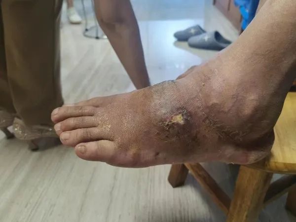 如果你的尿酸常年高于450,不及时把尿酸降下来,就会形成尿酸盐结晶,沉积到我们的关节组织、肌腱等等,就会引发关节的红肿、热痛,诱发痛风。