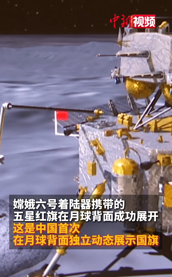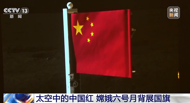 通过月球背面转播回来的画面,嫦娥六号着陆器当着全世界各国的面,展开了那面鲜红、璀璨,象征着中国与人民的五星红旗。