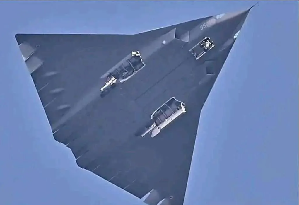 距离服役也用不了多久的时间,在其机头两侧明显可以看到尺寸较大的透明状光学窗口,安装的也就只有是司职对中高空探测的长波红外探测器,目的就是为了探测中高空的飞行器。再加上较大的机头空间,也可以安装面积较大的氮化镓有源相控阵雷达,从而提高对隐身目标的探测能力。还有较大的机腹主弹舱,挂载霹雳-17超远程空空导弹时,也可以尽早对B-21形成威胁,迫使其放弃投弹。