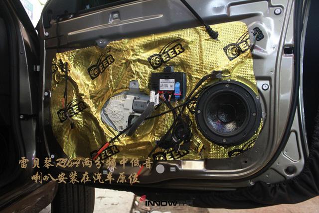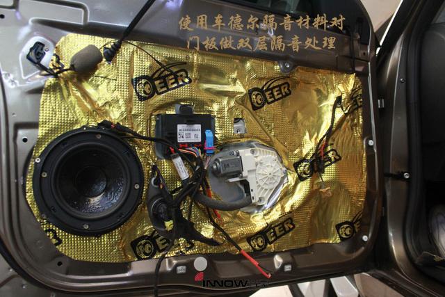 使用车德尔隔音材料对门板做双层隔音处理,为声场喇叭创造一个良好的工作环境
