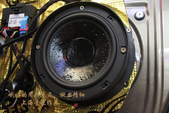 原车的门板隔音措施较为简单,除了门板自身的振动噪声以外,风噪也很容易通过门板传入到车厢内部,所以上海音豪的改装技师,使用车德尔隔音材料,对门板做了双层的隔音处理,从而减少了风噪和门板自身振动噪声,对音响品质的干扰。