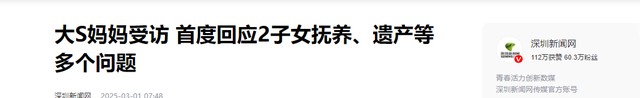 大S妈妈受访 首度回应2子女抚养、遗产等多个问题深圳新闻网2025-03-01