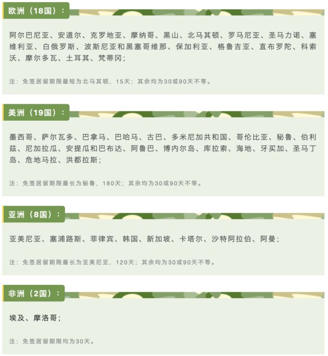 注:以上信息来自于中国领事服务网(http://cs.mfa.gov.cn),详细免签政策以落地国政策为准。