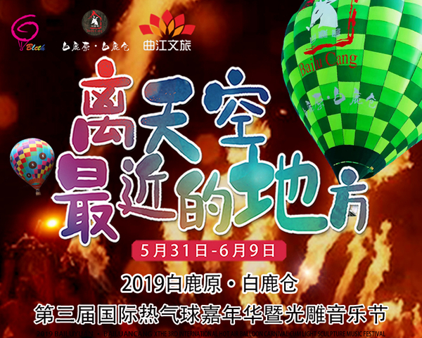 2019西安白鹿原·白鹿仓第三届国际热气球嘉年华暨光雕音乐会以“西安离天空最近的地方”为主题,集展示、体验、观赏为一体,由喷火巡游、热气球系留飞体验、热气球自由飞体验、热气球光雕音乐会组成。该活动从5月31日持续至6月9日,大牌歌手、酷炫乐队、网络红人云集白鹿仓,喷火巡游耀动古城,电音表演、灯光秀等精彩节目,邀您一起燥起来。