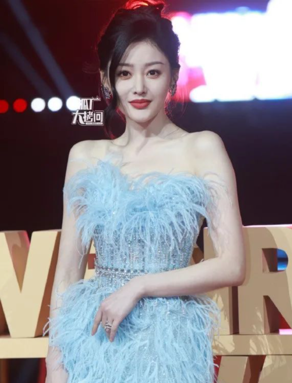 张天爱凭借电影《我和我的父辈》拿下了最佳青年电影女演员,身穿一袭蓝色抹胸羽毛裙,佩戴Garrard FANFARE系列珠宝亮相红毯,看着有点美还有点冻人。